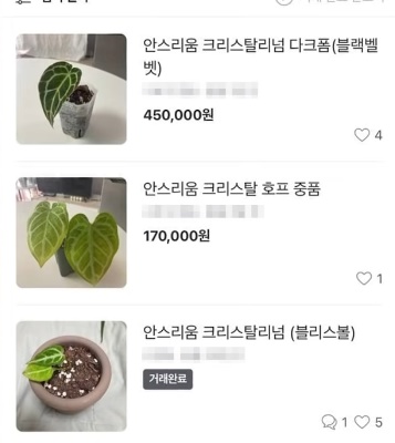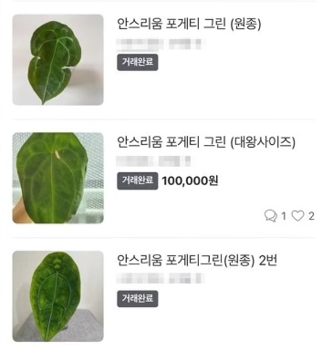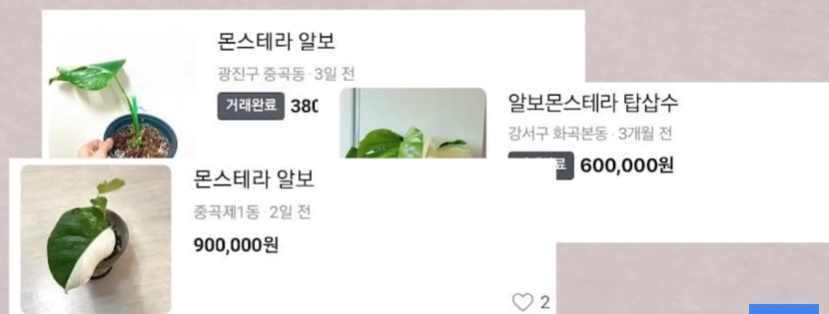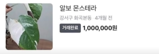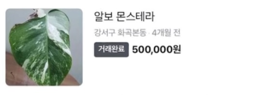 해당 식물은 잎 장 당 보통 한 장의 시세가 50-70만원 정도로 고액으로 거래되고 있다고 한다.