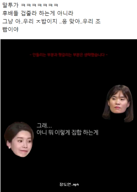 그리고 장도연과 박지선에게 빠져있는 후배들 군기좀 잡으라고 시켰고 순둥한 둘은 어떻게 후배들을 혼내야할지 몰라 이렇게 했다고 한다.