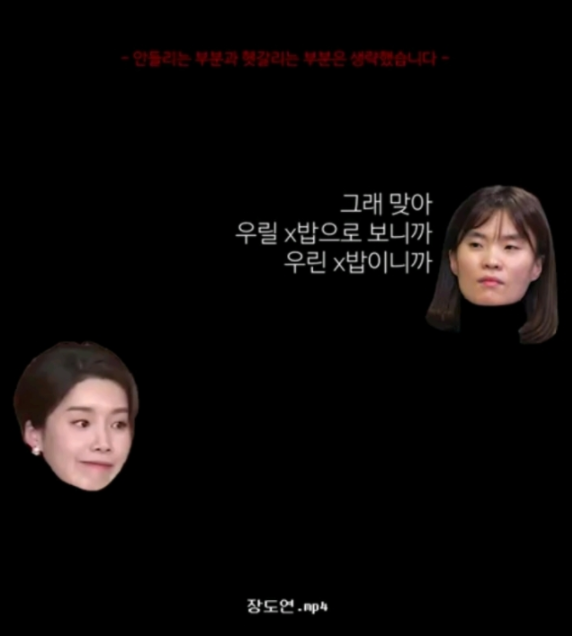 계속해서 자신들을 ‘X밥이야..’이러면서 대화를 나눈다.