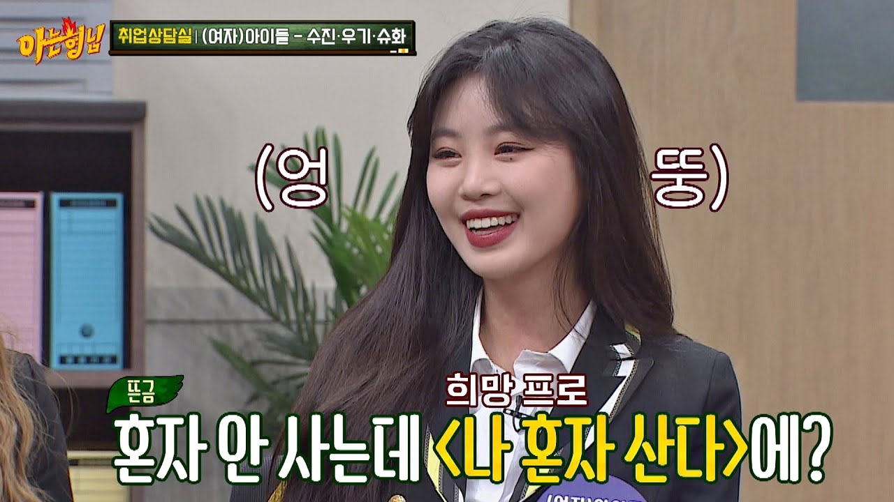 개성있는 외모와 뛰어난 실력을 보여주고 걸크러쉬로 유명한 (여자)아이들의 수진이 ‘나혼자산다’에 출연하고 싶다고 밝혔다.