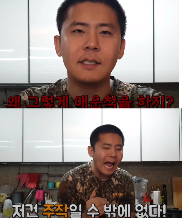 땀을 질질 흘리면서 “많이 맵지는 않다. 나는 안 매운데? 신대방 매운 돈가스보다는 안 맵다”라며 끝까지 버텼다.