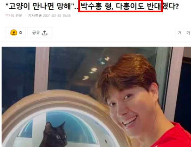 이 영상을 본 한 네티즌은 “박수홍의 친형이 고양이 키우는 것을 반대해서 비꼰 것이 아니냐”는 의혹을 제기했다.