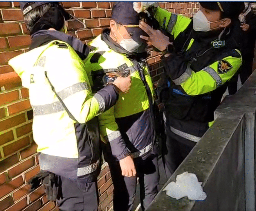 그러나 남성이 저항을 멈추자 곧장 일으켜 세웠다.