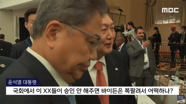 윤 대통령은 “국회(미국 의회)에서 이 XX들이 승인 안 해주면 바이든은 쪽 팔려서 어떡하나”라며 바이든 미국 대통령과 미국 의회를 직접 언급하는 험담을 했다.