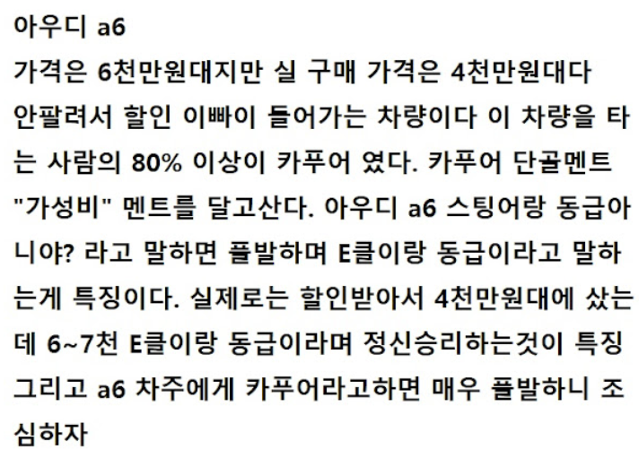 카푸어 전문가가 알려주는 카푸어 일 확률 95% 자동차 리스트