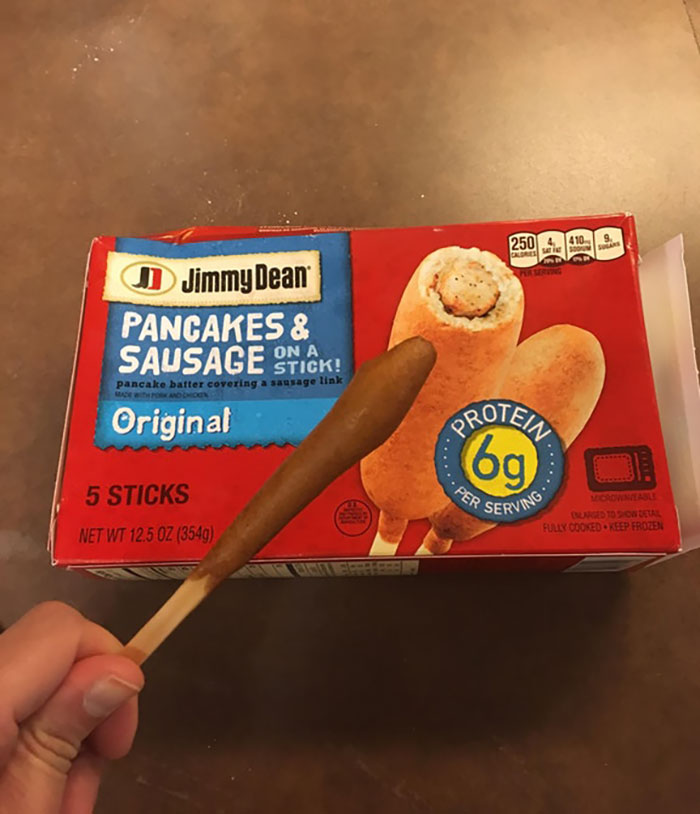 포장지를 뜯어 내용물을 확인한 순간 먹다 남긴 건 아닌지 의심하게 되는 핫도그다.