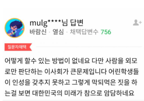 그런 그의 질문글을 본 한 누리꾼이 단 답변