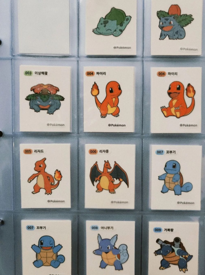 해당 씰은 포켓몬빵을 사면 1장씩 포함되어 있는 것으로, RM이 현재 모은 콜렉션을 확인할 수 있었다.