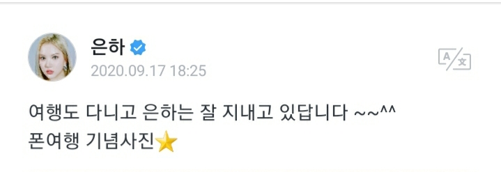 그는 “여행도 다니고 은하는 잘 지내고 있답니다~ 폰여행 기념사진”이라는 글도 남겼다.
