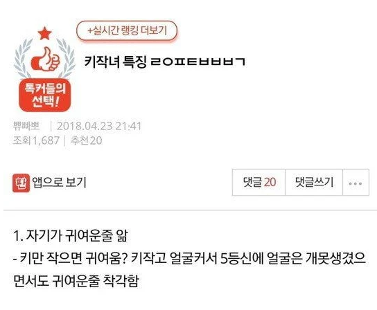 – 키만 작으면 귀여움? 키작고 얼굴커서 5등신에 얼굴은 개못생겼으면서도 귀여운줄 착각함