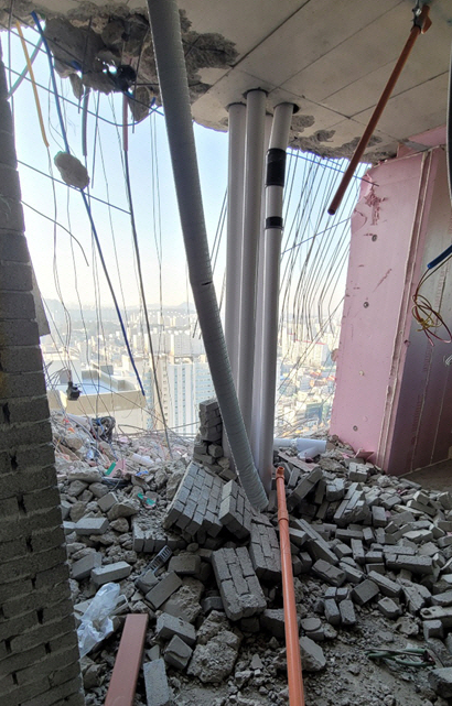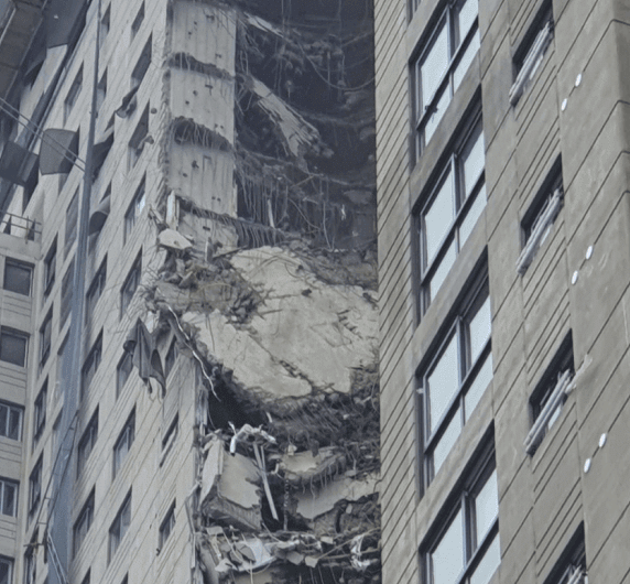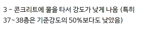 언론의 표현에 따르면 건물 외벽이 무너졌다고는 하나, 실상은 건물 외벽만 남고 23층부터 34층 구간 1, 2호라인의 거실 – 안방구역 슬래브(바닥)가 대부분 붕괴되었으므로 사실상 건물 자체가 무너졌다고 봐도 무방하다.
