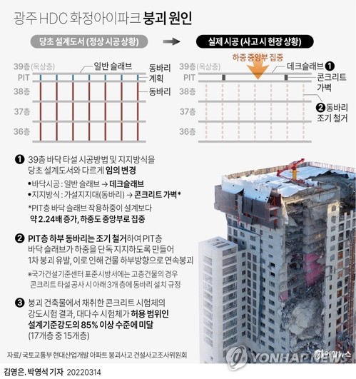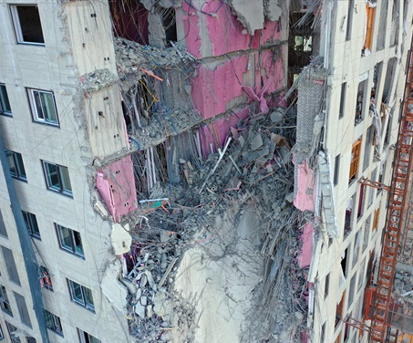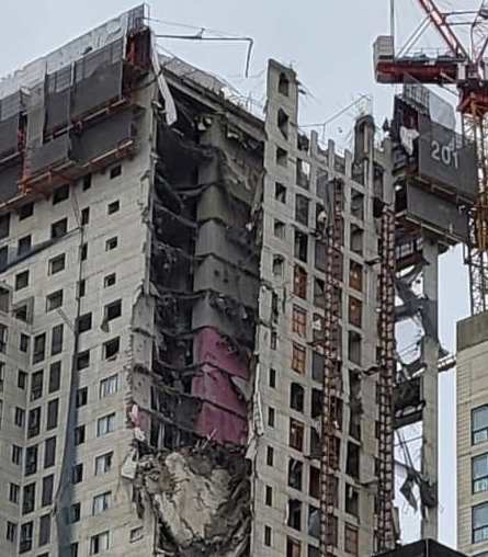 해당 건물은 철근 콘크리트로 만들어졌는데 붕괴된 구간은 201동(1개동) 23층부터 38층까지 총 16개 층으로 면적은 78,000㎡이다.