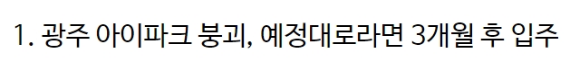 A씨는 “1. 광주 아이파크 붕괴, 예정대로라면 3개월 후 입주” 라고 전했다.