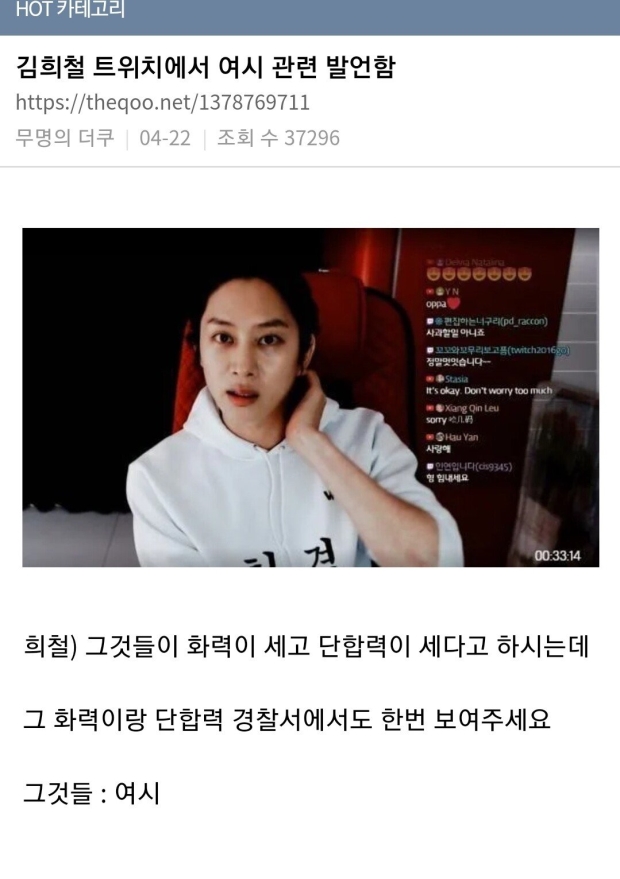 +++ 여초 커뮤니티 ‘여성시대’ 회원들 대거 고소한 김희철