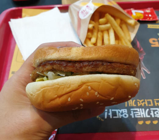 버거의 지름 자체가 좁다. 타사 버거 한 개와 롯데리아 버거 한 개는 양의 차이가 크다.