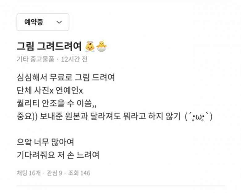 9일 한 온라인 커뮤니티엔 ‘그림 그려주는 당근마켓’이란 제목의 글이 화제를 모았다.