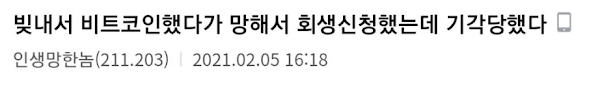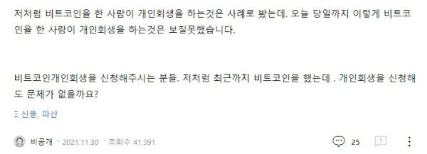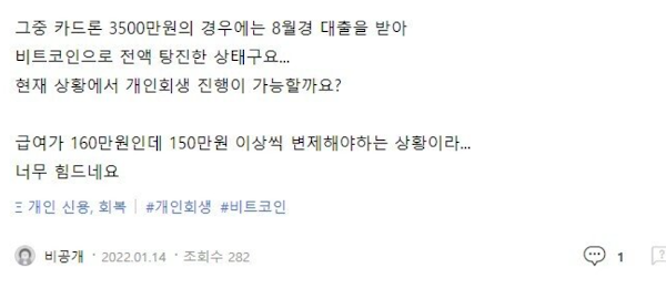 코인으로 2억 빚지고 개인회생 신청한 디시인 후기