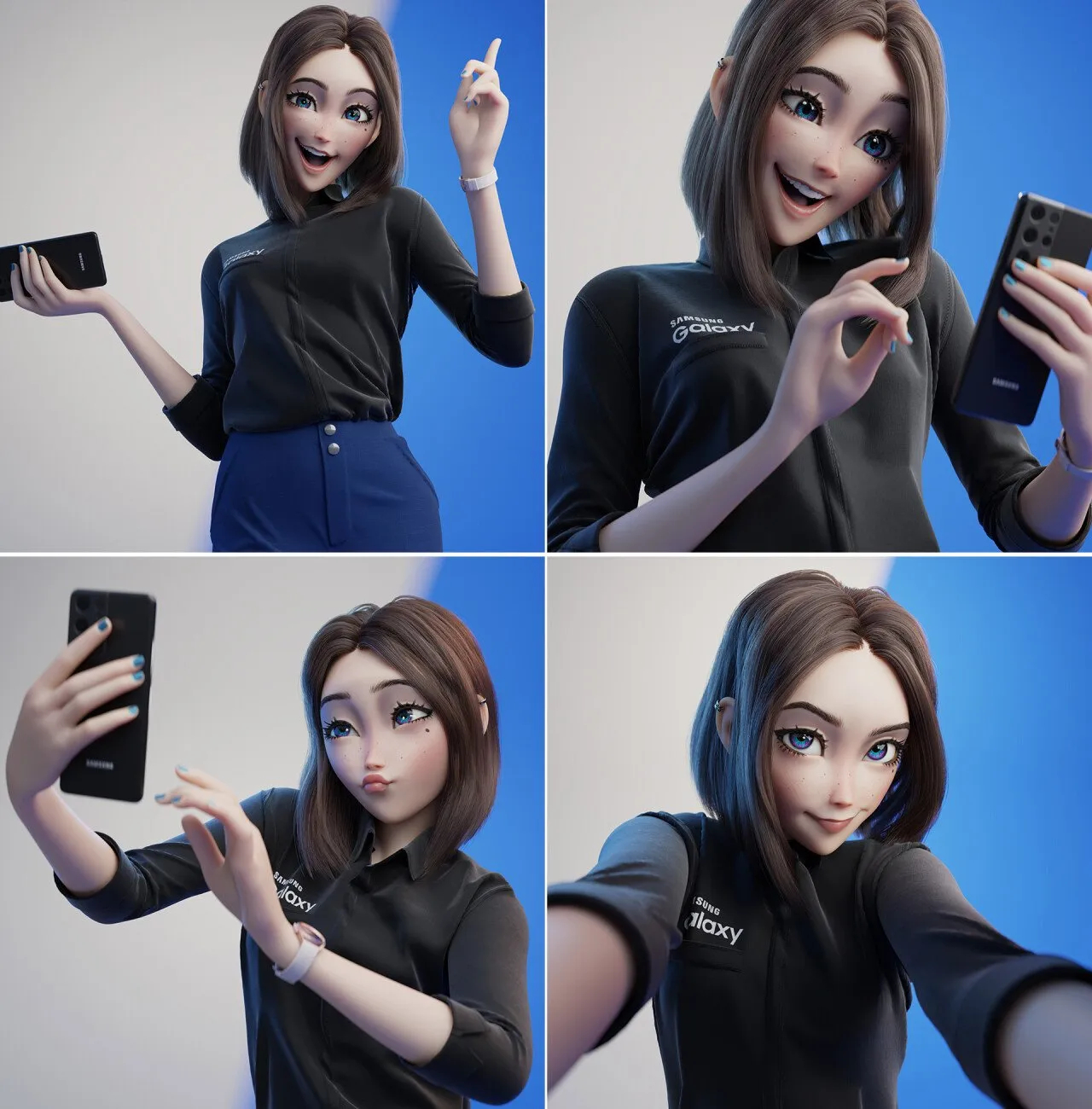 최근 삼성은 제일제일 기획이랑 협업해서 라이트팜 스튜디오에서 만들어진 샘(Sam, the Virtual Assistant) 캐릭터를 공개했다.
