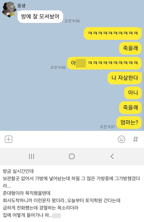 A씨가 “안된다”고 급히 막아보지만, 여동생은 이미 가방을 꺼낸 상태였다.