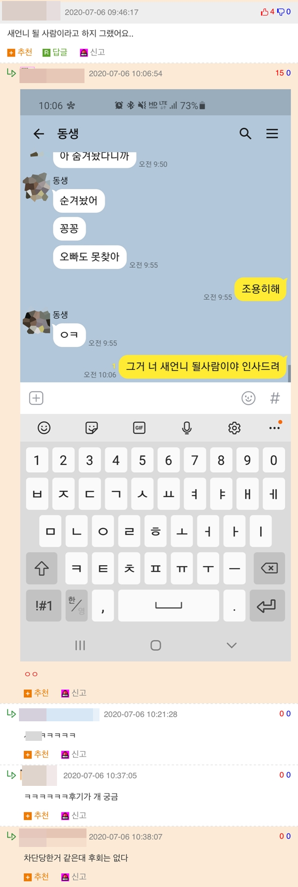 이때 한 누리꾼이 “새언니 될 사람이라고 하지 그랬냐”고 조언했다.