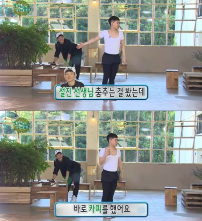 이 후에도 안무가 김설진에게 춤을 배우는 장면에서도 양세형이 ”설진 선생님 춤 추는 걸 봤는데 바로 카피를 했다”라 언급했다.