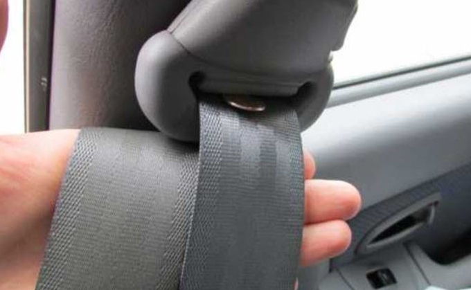 자동차 안전벨트를 자세히 살펴보면 벨트 끝 부분에 플라스틱으로 된 단추가 있다.