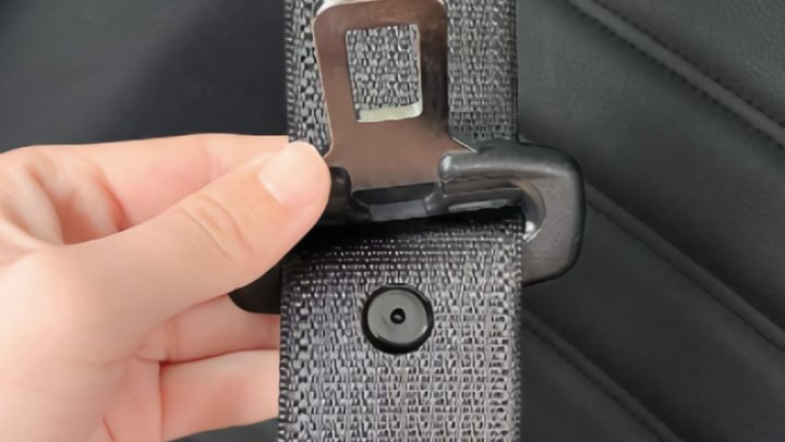 차에 타자마자 안전벨트를 매는데 이 작은 플라스틱 단추는 바로 안전벨트를 쉽게 맬 수 있도록 도움을 주는 역할을 하고 있으며 바로 안전벨트 걸쇠를 아래까지 쭉 내려가지 않도록 적당한 중간쯤 오는 위치에서 멈추도록 하는 역할을 하고 있다
