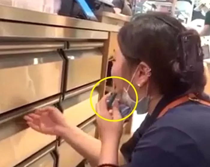 해당 영상은 인스타그램 스토리를 녹화한 것으로 보였으며 카페 알바생 한 명이 전자담배를 피우는 모습이었다.