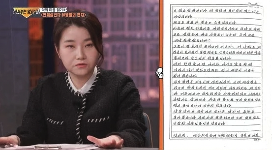 지난 13일 방송된 SBS ‘집사부일체’는 ‘그것이 알고싶다'(이하 그알) 30주년 특집으로, 연쇄살인범 유영철의 편지가 최초로 공개됐다.