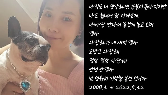 신봉선은 마지막으로 “우리 양갱이가 무지개다리를 건넜다”면서 “병원에서 안 보낼 수 있어서 너무 좋다. 사랑하는 양갱아, 고마워… 사랑해”라고 인사를 건넸다.