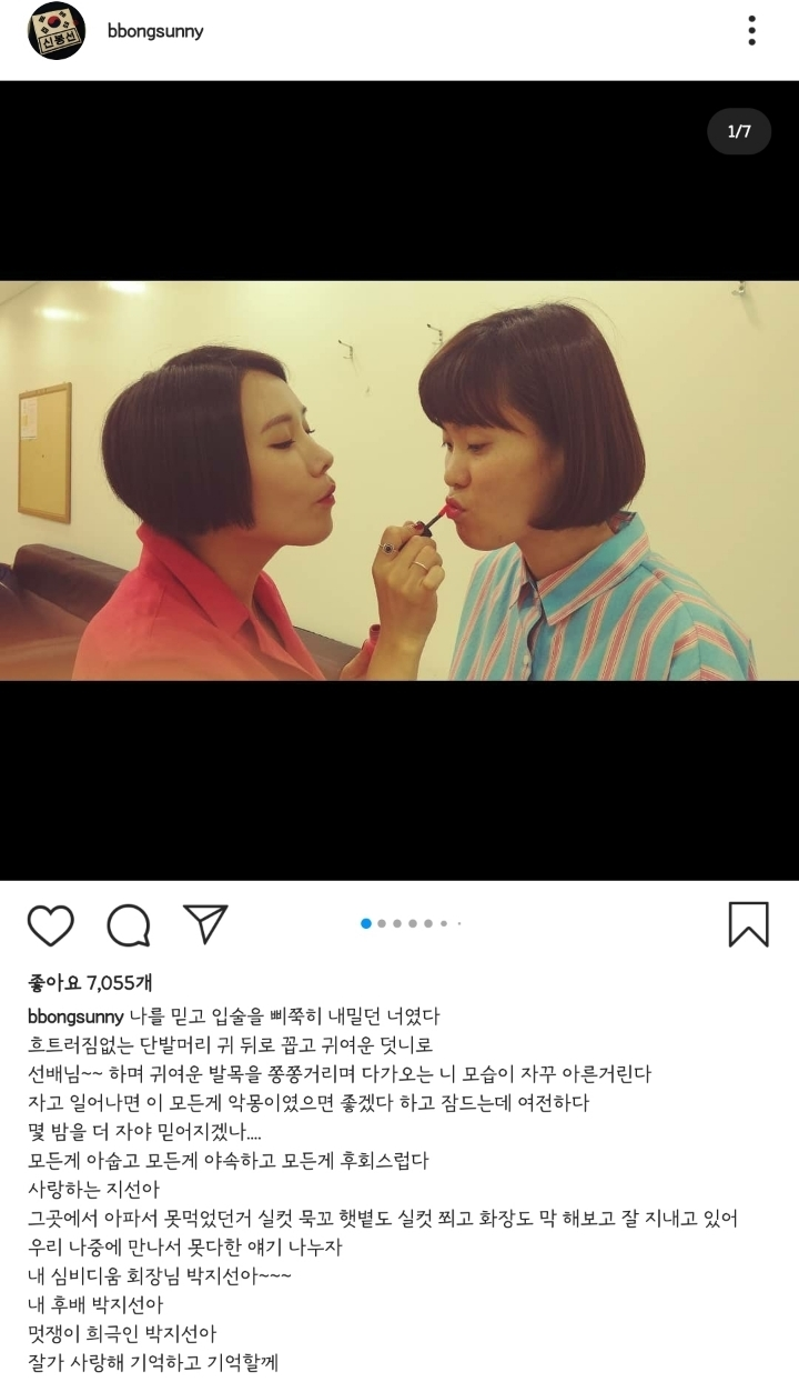 소식을 확인한 누리꾼들은 “글을 읽는데 눈물이 쏟아졌다. 봉선언니도 힘내셨으면 좋겠다”, “글만 봐도 지선님이 얼마나 선한 사람이었는지 알겠다.