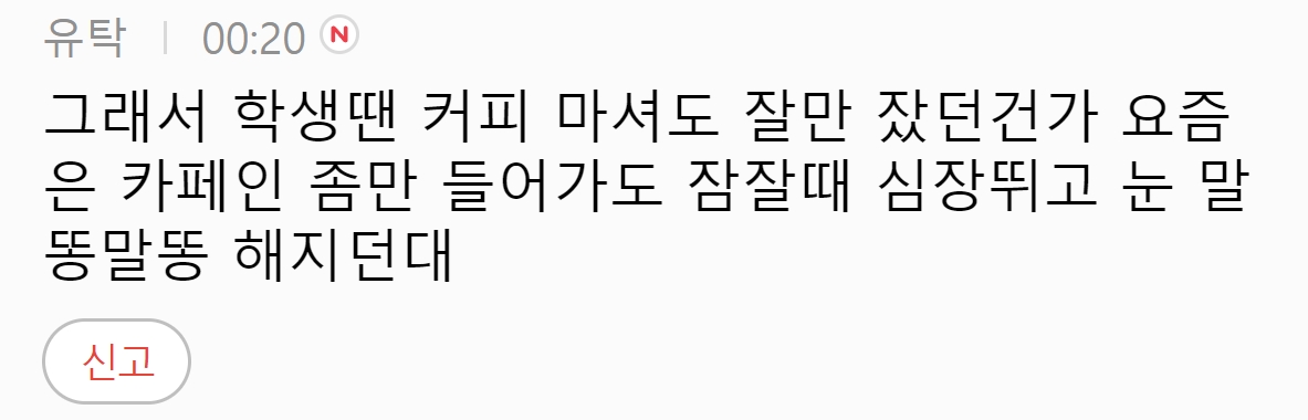 해당 게시물을 접한 누리꾼들은 “아 진짜 나도 내성 생겼나..”, “아무리 마셔도 졸려워 이제는..”, “진짜 피곤할 때만 마심 나는..”, “나는 그냥 커피 끊었음 소용이 없어서ㅋㅋ”, “카페인 끊어야하나..”, “카페인 내성 생김”라며 현재 다양한 반응을 보이고 있다.