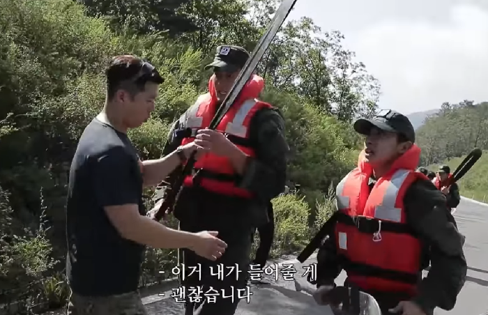 그러나 권 교관은 “다른 거 시키게, 쉬운 거 시킬게”라며 억지로 패들을 뺏더니 “곰 걸음으로 출발”이라고 말했다.