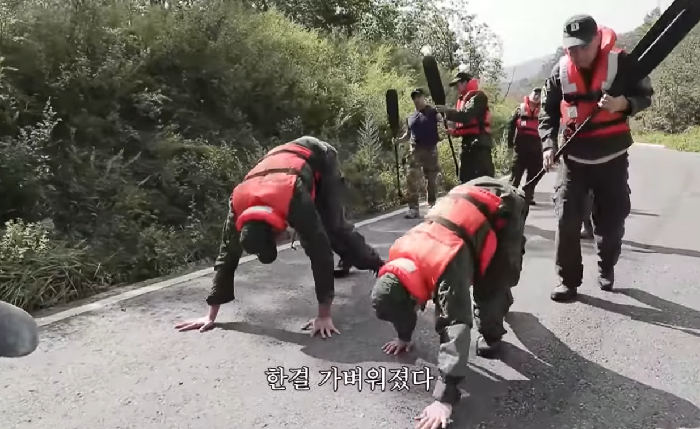 곰 걸음을 하며 힘들어하는 그의 앞에서 권 교관은 “교관이 패들 들어준다.