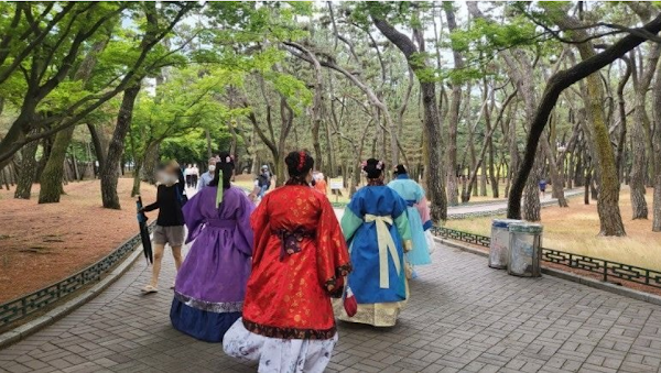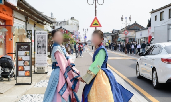 황리단길과 대릉원 앞길, 교촌마을 일대에 의복체험을 할 수 있는 대여점이 밀집해 있다고 한다.