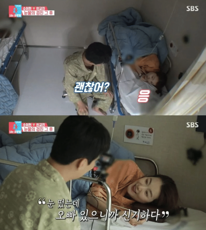 수면 내시경 이후 잠들어있는 소이현을 보던 인교진은 “내가 나쁜 놈들 다 지켜줘야지. 오면 싹 내가 물리쳐야지”라고 말하며 울컥했다.