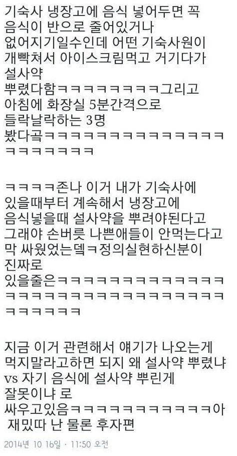 각종 온라인 커뮤니티에는 “트위터에 돌고 있는 기숙사 설사약 투척 사건”이라는 제목의 글이 올라와 화제가 됐다.