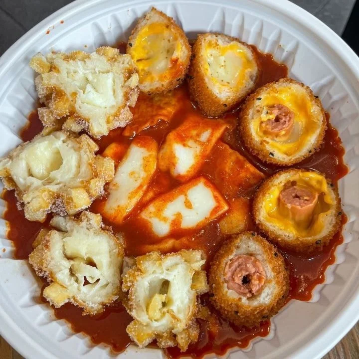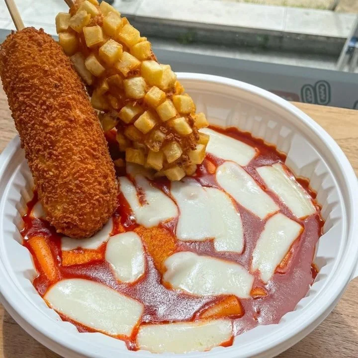 떡볶이에 치즈는 기본으로 들어있으며, 맵지 않은 맛이라고 한다.