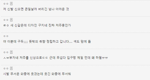 참고로 저 신발은 이번 시즌에 나온 신상……..똑같은 신발 가진 사람도 있고 의류처리함 같은데 버릴만한 물건은 아니라고 함 구두 상태도 좋고…..