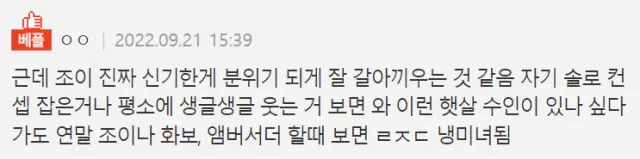 A씨가 올린 조이의 사진을 본 일부 네티즌은 “근데 조이 진짜 신기한게 분위기 되게” 라고 전했다.