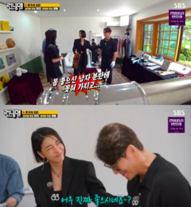 진서연은 유재석을 무시하고, 김종국을 훑어보더니 “(소민이가) 몸 좋으신 남자 분한테 꽂혀 가지고 어우 진짜 좋으시네요~”라 다소 어이없는 말을 뱉었다.