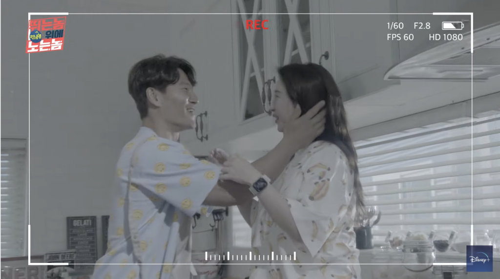 지난 2일 공개된 디즈니 플러스 웹 예능 ‘런닝맨: 뛰는 놈 위에 노는 놈’에서는 뮤직비디오 촬영에 나선 송지효와 김종국의 모습이 담겼다.