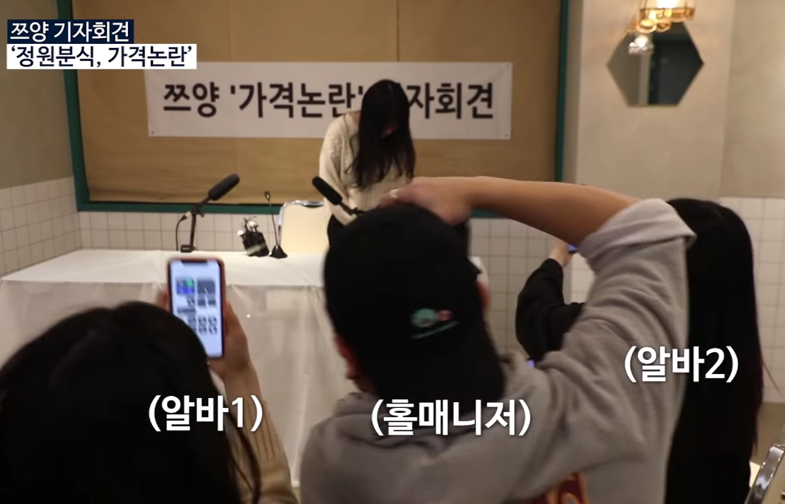 해당 영상에서는 오픈하는 매장의 직원들과 함께 기자회견의 모습을 패러디한 모습으로 가격논란에 대한 해명을 시작했다.