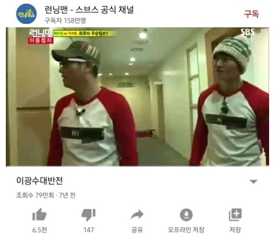 최근 온라인 커뮤니티에 런닝맨 공식 유튜브에 달린 스브스 채널 유튜브의 글이 주목을 받았다.