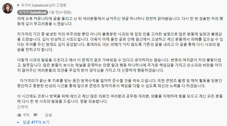 국가비의 사과문은 아래를 통해 자세히 확인할 수 있다.