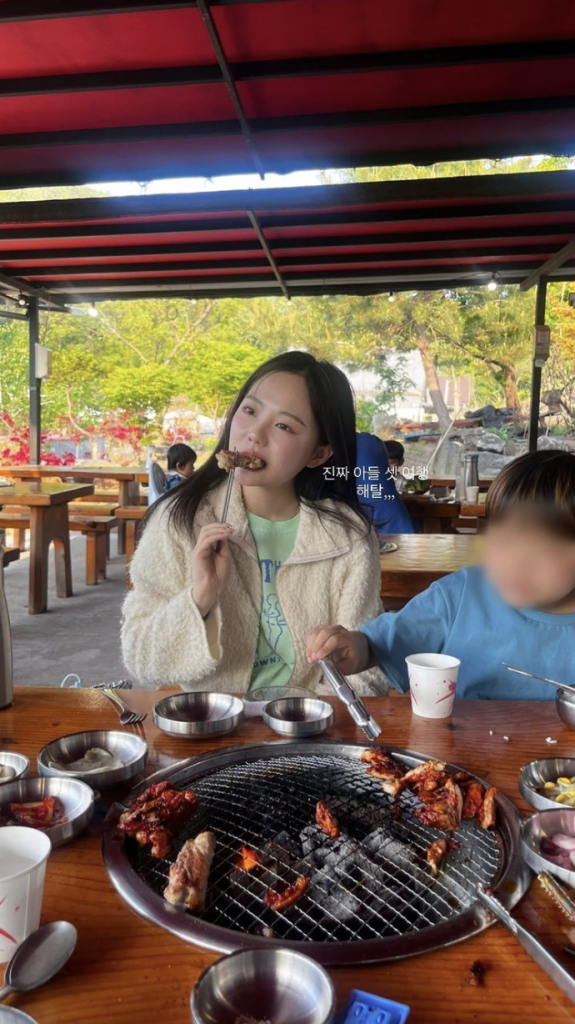 그는 멍한 표정으로 닭갈비를 먹고 있는 사진에 “진짜 아들 셋 여행 해탈”이라고 적어 지친 기색을 내비쳤다.