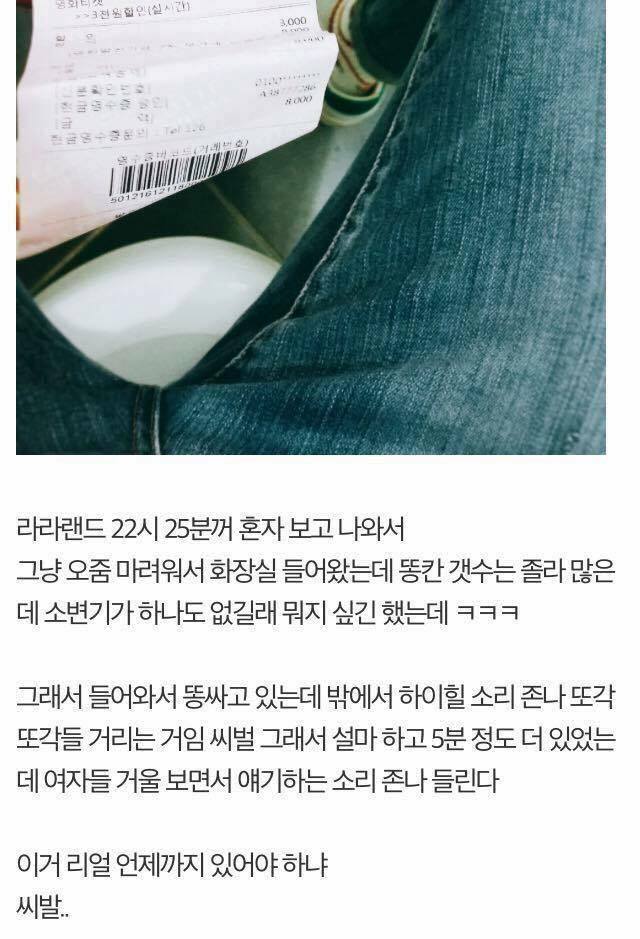 라라랜드보러 왔는데 여자 화장실에 갇혔다 씨X.