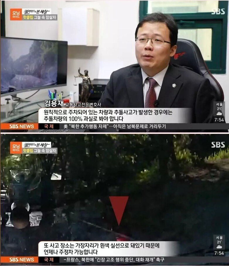 이어 “또 사고 장소는 가장자리가 흰색 실선이라 언제나 주정차가 가능하다. 저기에 주차를 해놨더라도 불법은 아니다”고 덧붙였다.