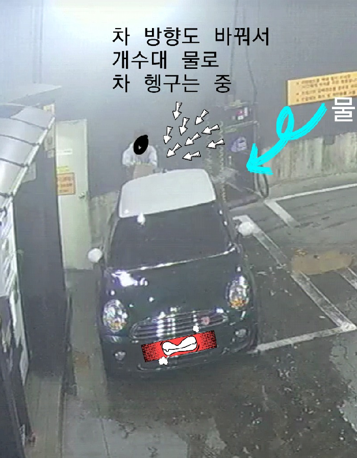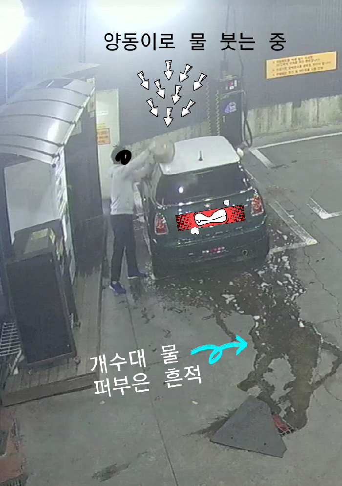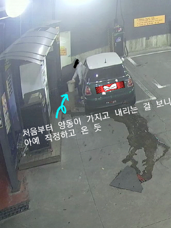 글에 따르면 새벽 4시경 해당 셀프세차장에 차량 한 대가 들어왔다. 운전자는 개수대 근처에 차를 주차한 뒤 양동이를 들고 차에서 내렸다.
