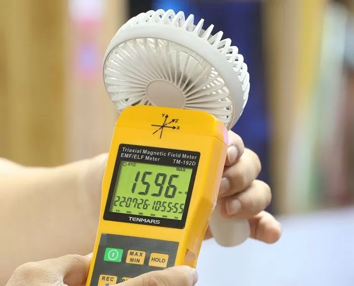 또한 6종의 손 선풍기에선 평균 464.44mG, 최소 29.54mG~최대 1289mG의 전자파가 발생했다고 알리면서 손 선풍기 평균 전자파 수치 배경값 0.3mG보다 1548배 달하는 수치를 공개했다.